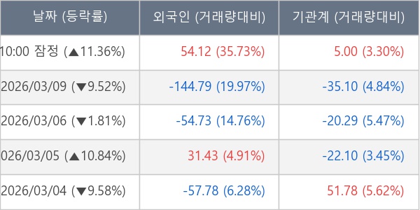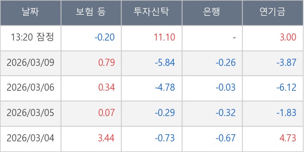 [표] 주요 기관별 순매매량 (단위 만주)