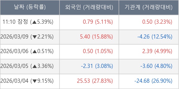 [표] 외국인ㆍ기관 순매매량 (단위 만주)
