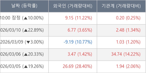 [서울=뉴스핌] 로보뉴스 = 11일 10시 15분 현재 디케이티(290550)는 전일 대비 10.00% (현재가 19,250원) 상승했고, 기관이 최근 5일 연속 순매수(누적 40.39만 주, 잠정) 행진을 하고 있다.