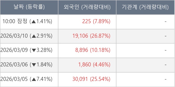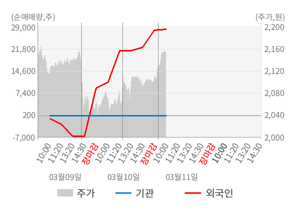 [표] 외국인ㆍ기관 순매매량 (단위 주)