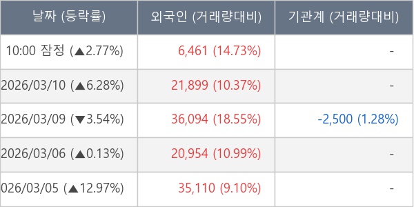 [표] 외국인ㆍ기관 순매매량 (단위 주)