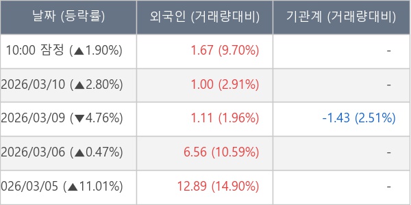 [표] 외국인ㆍ기관 순매매량 (단위 만주)
