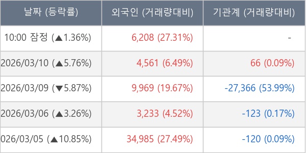 [표] 외국인ㆍ기관 순매매량 (단위 주)
