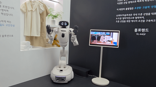 전시장 내 가장 큰 규모로 조성된 LG에너지솔루션 부스에서 관람객들의 발길이 가장 오래 머문 곳은 단연 '로보틱스&드론 존'이었다. 특히 최근 글로벌 시장에서 화제를 모은 홈로봇 'LG 클로이드'가 실물로 등장하자 주위는 순식간에 관람객들로 가득 찼다. 관람객들은 로봇의 팔 움직임을 지켜보며 내부에 탑재된 배터리의 안전성과 연속 구동 시간에 질문을 쏟아냈다.