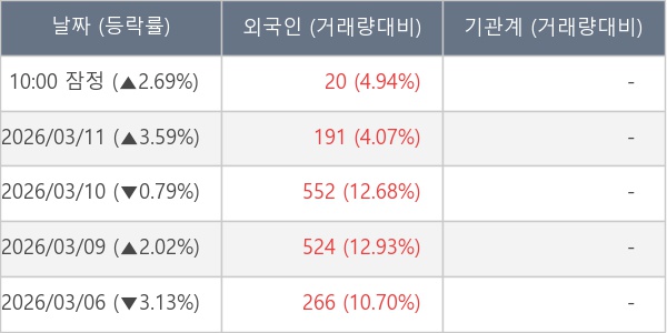 [표] 외국인ㆍ기관 순매매량 (단위 주)