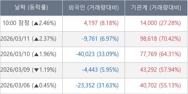 [표] 주요 기관별 순매매량 (단위 주)