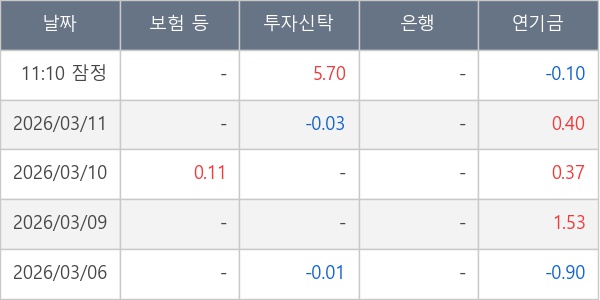 [표] 주요 기관별 순매매량 (단위 만주)