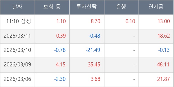 [표] 주요 기관별 순매매량 (단위 만주)