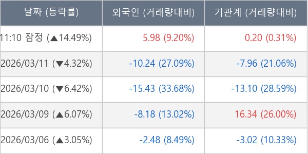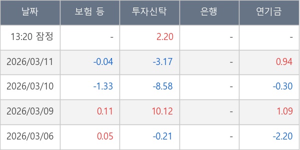 [표] 주요 기관별 순매매량 (단위 만주)