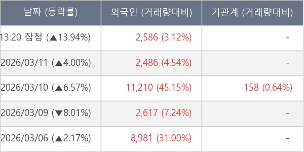 [서울=뉴스핌] 로보뉴스 = 12일 13시 30분 현재 심플랫폼(444530)은 전일 대비 13.94% (현재가 7,110원) 상승했고, 외국인이 최근 7일 연속 순매수(누적 60,109주, 잠정) 행진을 하고 있다.