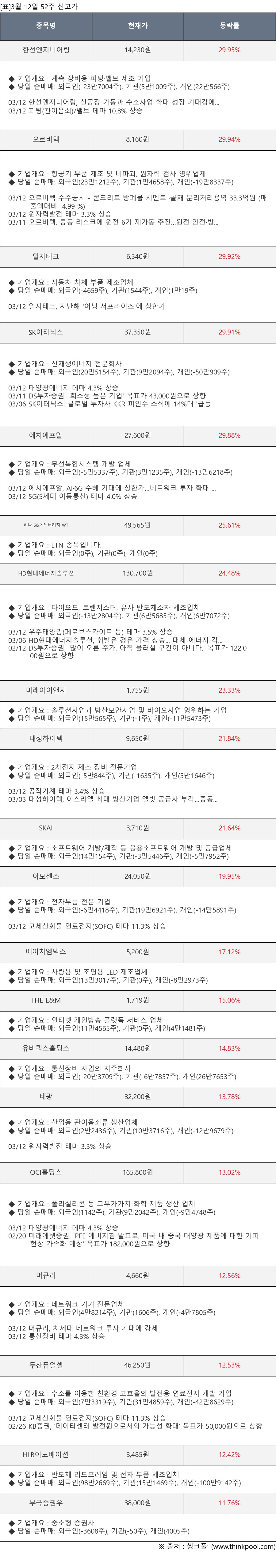 [서울=뉴스핌] 로보뉴스 = 3월 12일, 인공지능 투자비서 ‘AI라씨로’는 52주 신고가가 발생한 한선엔지니어링(452280), 오르비텍(046120) 등의 최근 동향을 분석해서 발표했다.