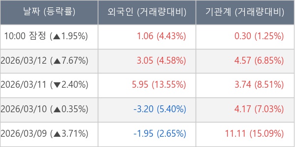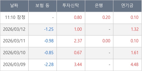 [표] 주요 기관별 순매매량 (단위 만주)
