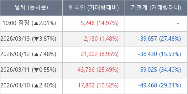 [표] 외국인ㆍ기관 순매매량 (단위 주)