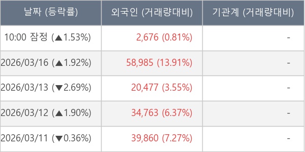 [표] 외국인ㆍ기관 순매매량 (단위 주)