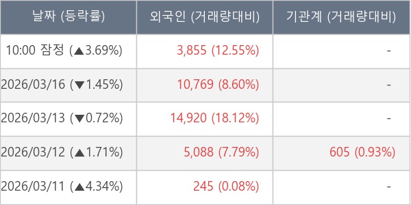 [표] 외국인ㆍ기관 순매매량 (단위 주)