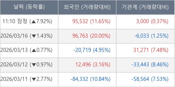 ※ 사모펀드 등 일부 기관의 순매매량은 표시되지 않음