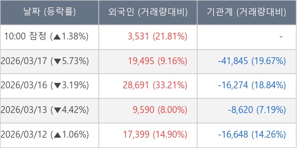 [표] 외국인ㆍ기관 순매매량 (단위 주)