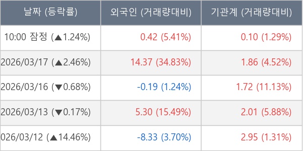 [표] 주요 기관별 순매매량 (단위 만주)