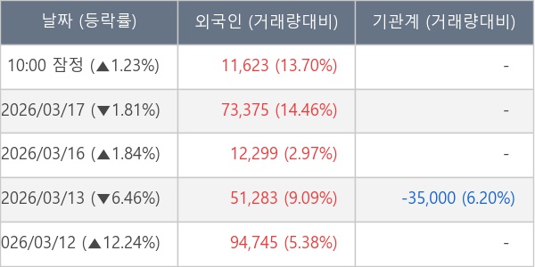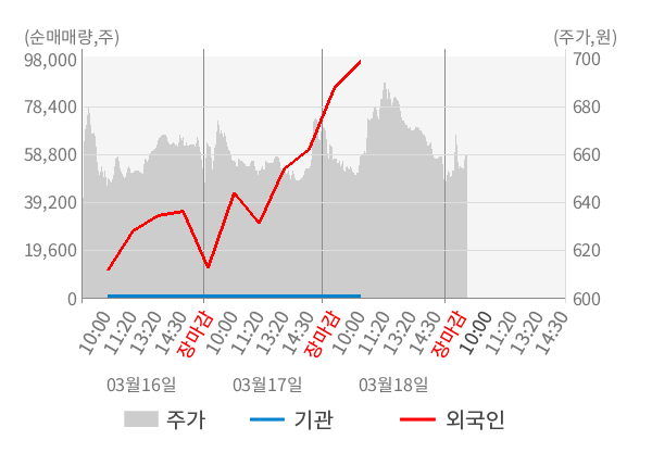 [표] 외국인ㆍ기관 순매매량 (단위 주)
