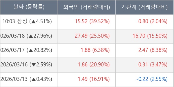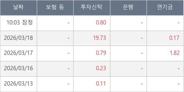 [표] 주요 기관별 순매매량 (단위 만주)