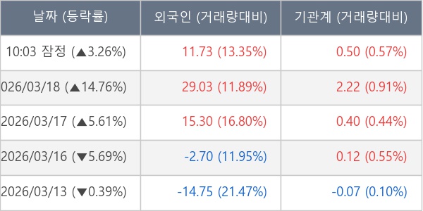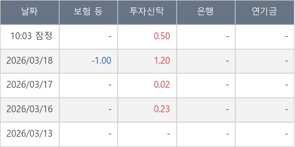 [표] 주요 기관별 순매매량 (단위 만주)