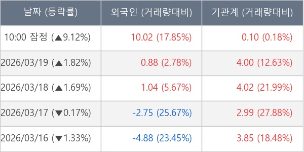 [표] 외국인ㆍ기관 순매매량 (단위 만주)