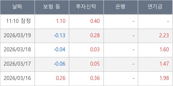 [표] 주요 기관별 순매매량 (단위 만주)