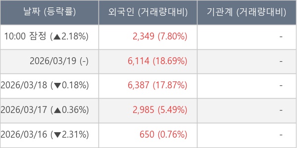 [표] 외국인ㆍ기관 순매매량 (단위 주)