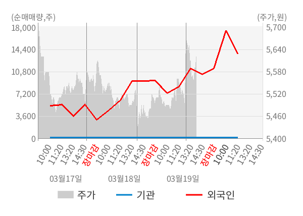 [서울=뉴스핌] 로보뉴스 = 20일 10시 15분 현재 아이씨디(040910)는 전일 대비 2.18% (현재가 5,630원) 상승했고, 외국인이 최근 5일 연속 순매수(누적 18,485주, 잠정) 행진을 하고 있다.