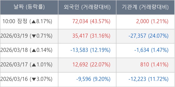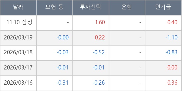 [표] 주요 기관별 순매매량 (단위 주)