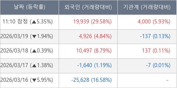 [표] 외국인ㆍ기관 순매매량 (단위 주)