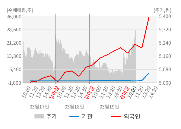 [서울=뉴스핌] 로보뉴스 = 20일 11시 30분 현재 코아시아(045970)는 외국인과 기관이 각각 1.99 만 주, 0.40 만 주 순매수(잠정) 하면서 전일 대비 5.35% (현재가 5,320원) 상승하고 있다.