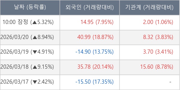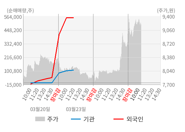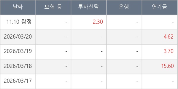 [표] 주요 기관별 순매매량 (단위 만주)