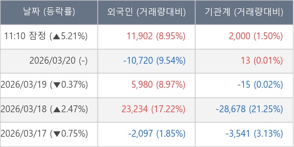 [표] 외국인ㆍ기관 순매매량 (단위 주)