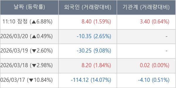 [표] 주요 기관별 순매매량 (단위 만주)