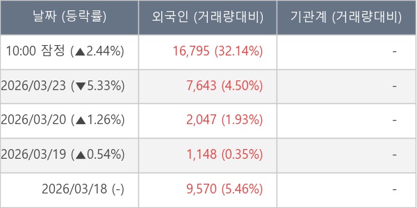[표] 외국인ㆍ기관 순매매량 (단위 주)