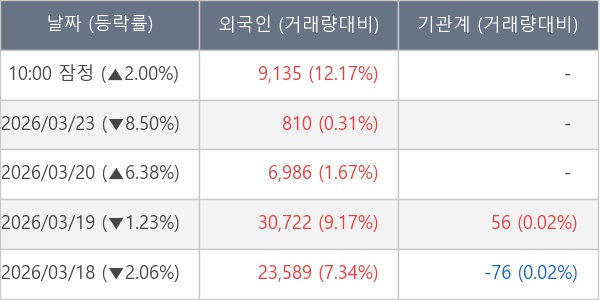 [표] 외국인ㆍ기관 순매매량 (단위 주)