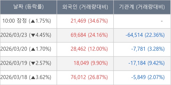 [표] 외국인ㆍ기관 순매매량 (단위 주)