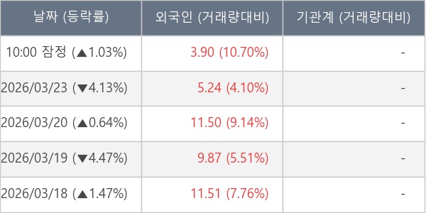 [표] 외국인ㆍ기관 순매매량 (단위 만주)