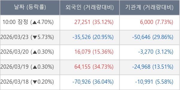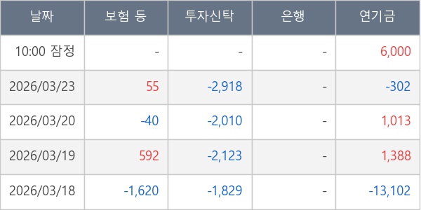 [표] 주요 기관별 순매매량 (단위 주)