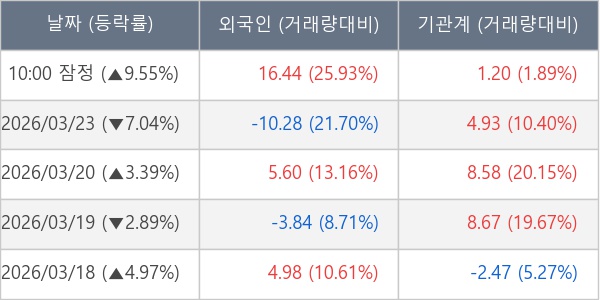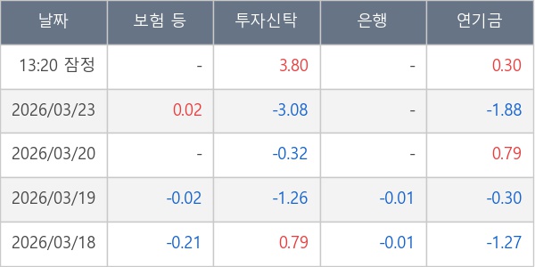 [표] 주요 기관별 순매매량 (단위 만주)
