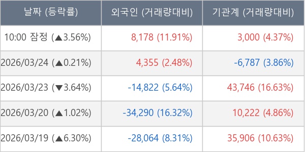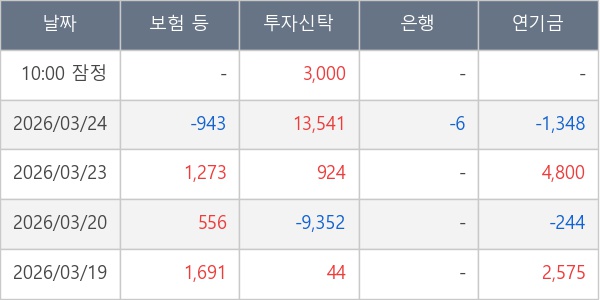 [표] 주요 기관별 순매매량 (단위 주)