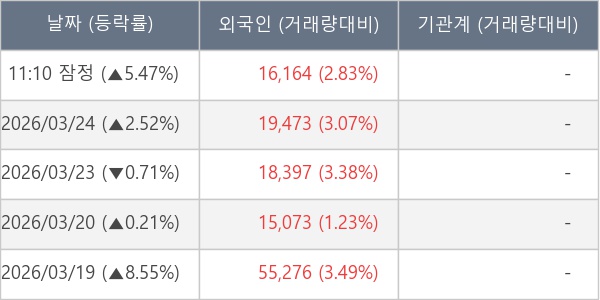 [표] 외국인ㆍ기관 순매매량 (단위 주)