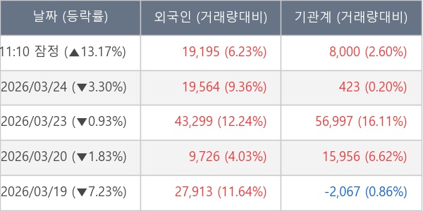 [표] 외국인ㆍ기관 순매매량 (단위 주)