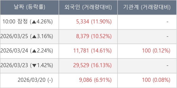 [표] 외국인ㆍ기관 순매매량 (단위 주)
