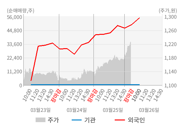 [서울=뉴스핌] 로보뉴스 = 26일 10시 15분 현재 에이루트(096690)는 전일 대비 4.26% (현재가 1,225원) 상승했고, 외국인이 최근 6일 연속 순매수(누적 10.06만 주, 잠정) 행진을 하고 있다.