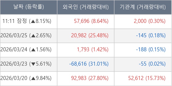 [표] 주요 기관별 순매매량 (단위 주)