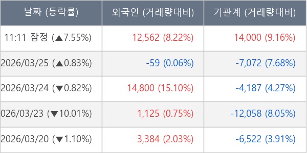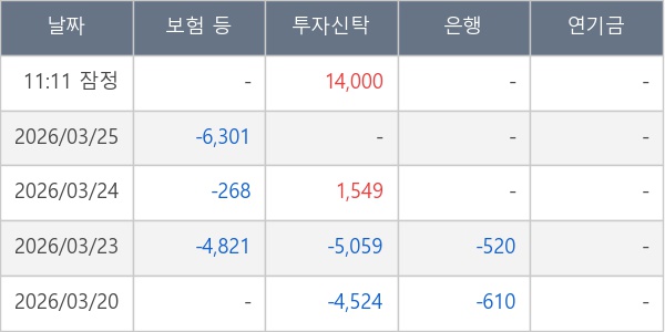 [표] 주요 기관별 순매매량 (단위 주)