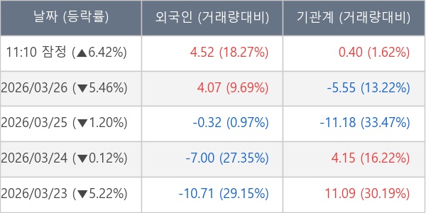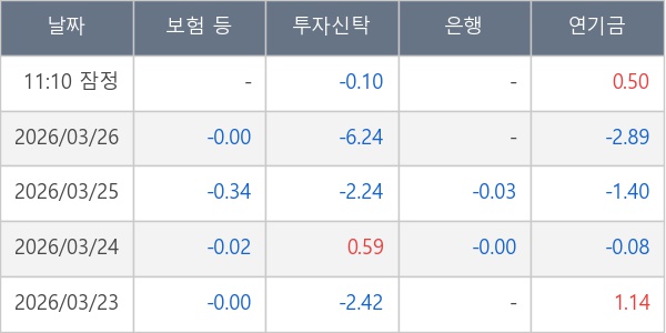 [표] 주요 기관별 순매매량 (단위 만주)