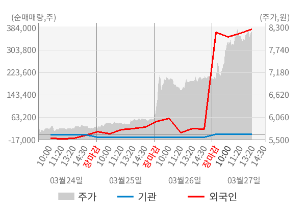 ※ 장중 매매동향은 잠정치이므로 실제 매매동향과 차이가 발생할수 있음